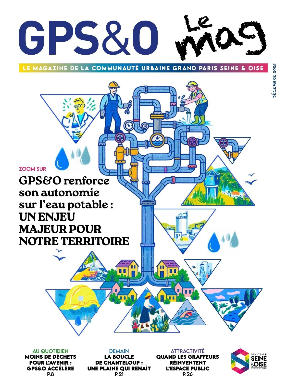 GPS&O, Le Mag est le magazine d’information de la Communauté urbaine Grand Paris Seine & Oise. Destiné aux habitants des communes du territoire, il propose un éclairage sur les projets et les politiques publiques portés à l’échelle intercommunale. Au fil des pages, la publication aborde les grands enjeux du territoire : développement économique, transition écologique, mobilités, aménagement ou encore services aux habitants. Dossiers, reportages et témoignages permettent également de découvrir les initiatives locales et les acteurs qui contribuent au dynamisme de l’agglomération. Ce support vise ainsi à mieux faire connaître les actions de la communauté urbaine et les transformations du territoire.