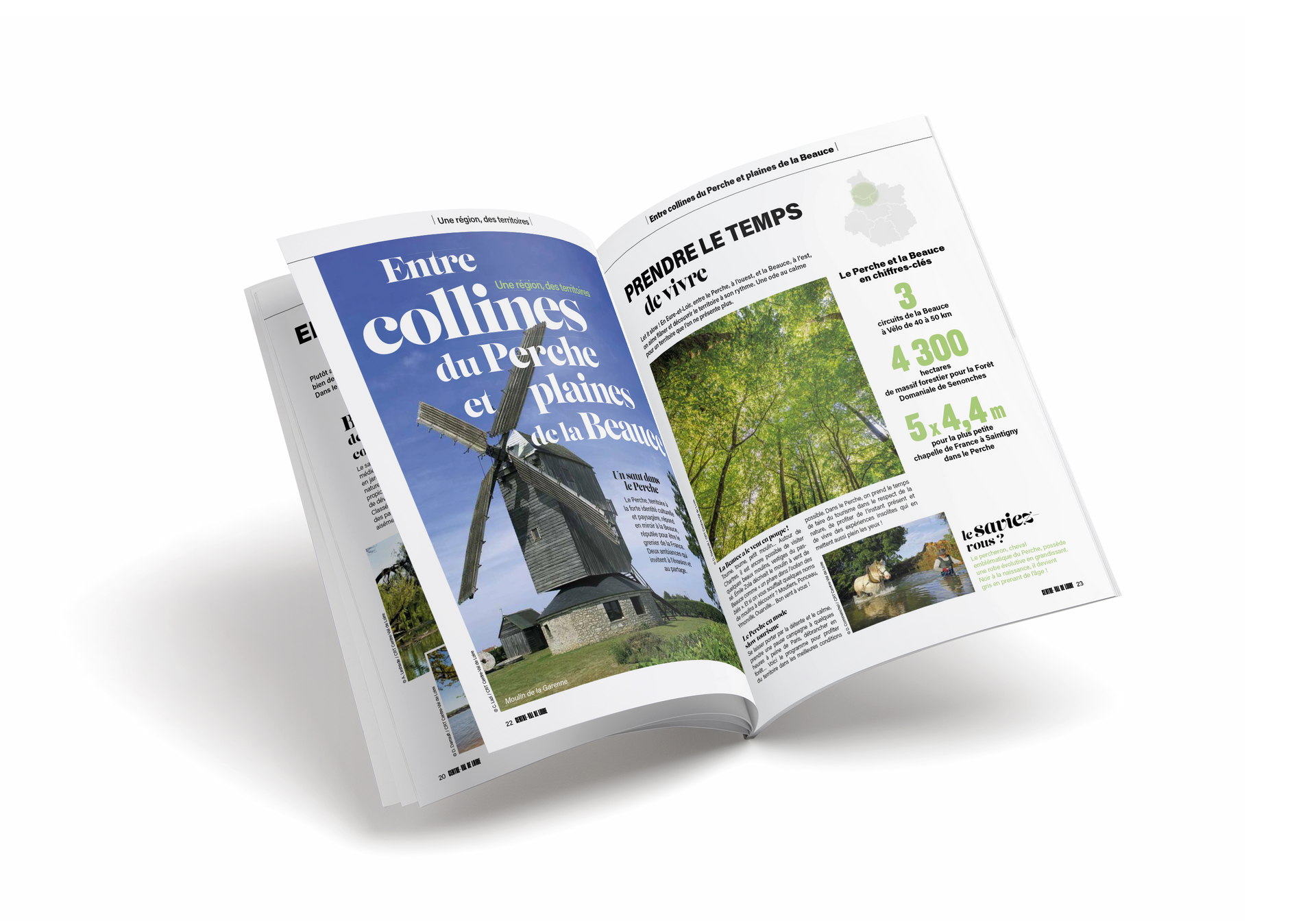 Autour de ces marqueurs, le magazine alterne reportages au cœur des territoires, portraits d’acteurs, décryptages patrimoniaux, itinéraires vélo, randonnées, produits labellisés, initiatives touristiques ou gastronomiques, témoignages sensibles de personnalités attachées au territoire (Christophe Hay, Stéphane Bern et Nicolas Vanier).