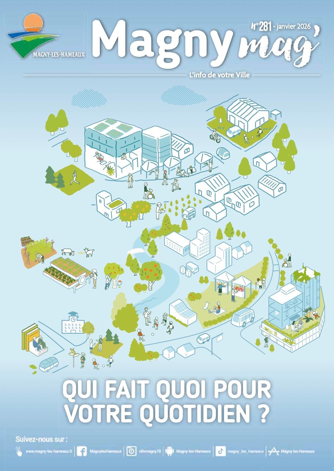 Magny Mag’ est le magazine municipal de la Ville de Magny-les-Hameaux. Destiné aux habitant·e·s, il propose un panorama complet de l’actualité locale et des actions conduites par la municipalité. Au fil de ses pages, la publication met en lumière les projets du territoire, les initiatives des services municipaux et les événements qui rythment la vie de la commune. Dossiers thématiques, informations pratiques, portraits et agenda culturel permettent aux lecteurs de suivre les évolutions de la ville, de découvrir les acteurs locaux et de s’informer sur les rendez-vous proposés tout au long de l’année.
