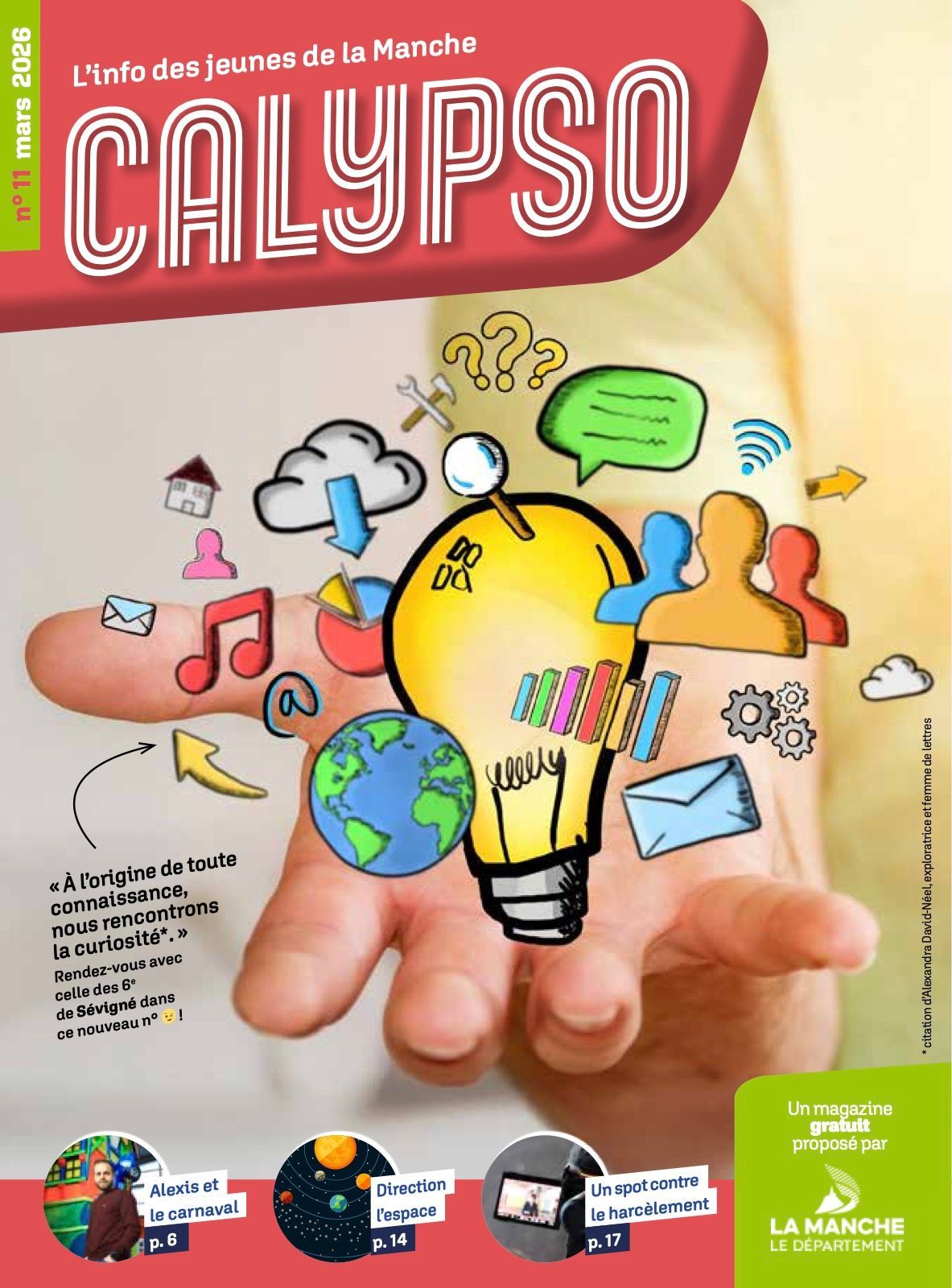 Calypso est le magazine du département de la Manche. Il propose aux jeunes habitant·e·s un regard approfondi sur les projets, les politiques publiques et les initiatives qui animent le territoire. Au fil des pages, dossiers thématiques, reportages et portraits donnent la parole aux acteurs locaux et mettent en lumière les actions menées dans des domaines variés : solidarités, environnement, aménagement, culture ou encore attractivité du territoire. Richement illustré et pédagogique, le magazine valorise également les paysages, les savoir-faire et les dynamiques locales.