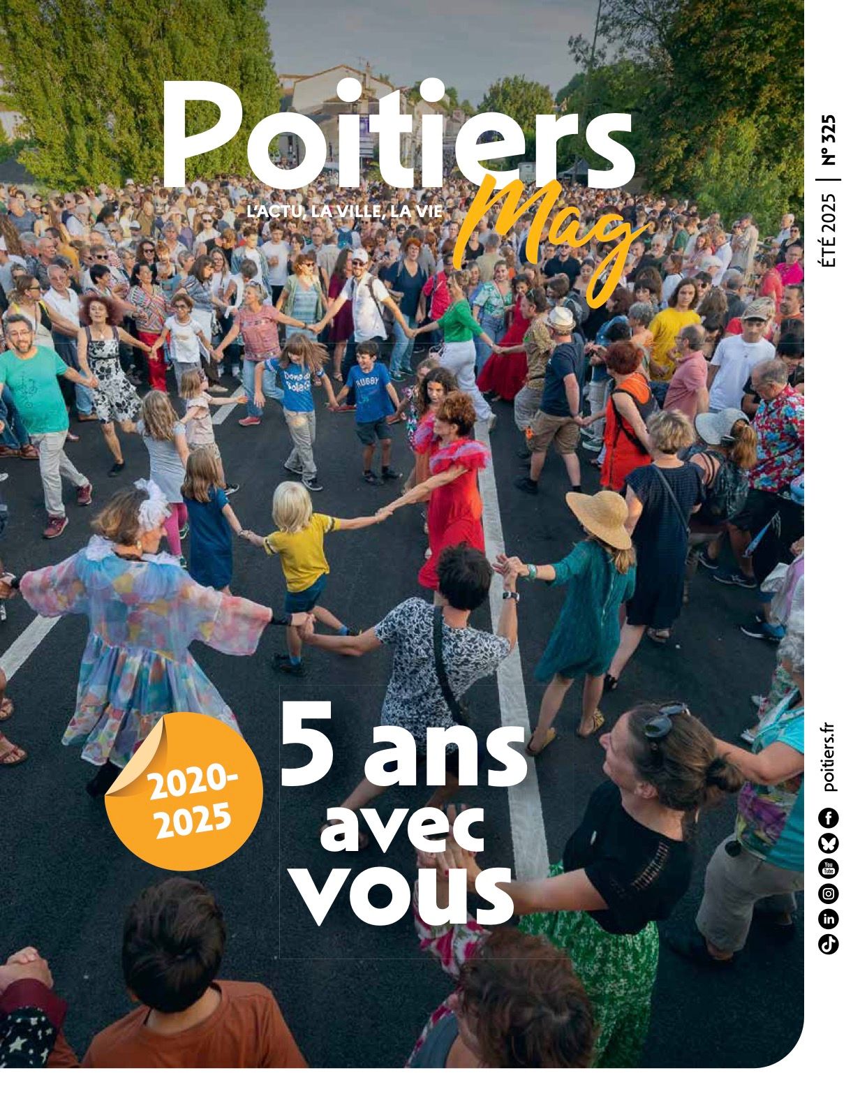 Poitiers Mag est le magazine municipal de la ville de Poitiers. Il propose un panorama régulier de la vie locale et des actions menées par la collectivité. Au fil de ses pages, les lecteurs découvrent les projets d’aménagement, les politiques publiques, ainsi que les initiatives citoyennes qui animent la ville. Reportages, dossiers de fond, portraits et informations pratiques permettent d’explorer les transformations du territoire et les services proposés aux habitant·e·s. Le magazine met également en avant les événements culturels, les dynamiques associatives et les acteurs qui contribuent au rayonnement de Poitiers et à la qualité de vie de ses habitant·e·s.