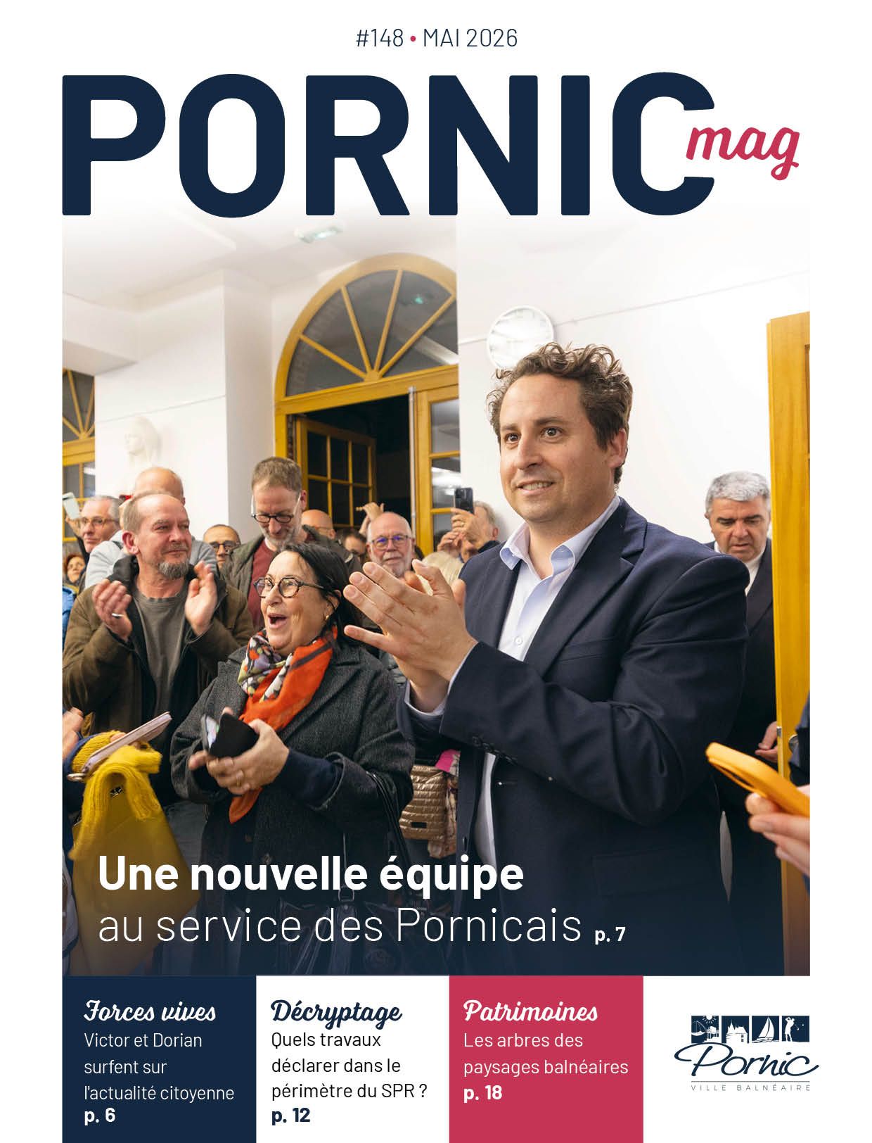 Édité par la Ville de Pornic, Pornic Mag est dédié à l’actualité et à la valorisation de la commune. À travers ses différentes rubriques, il met en lumière les projets municipaux, les initiatives locales et les acteurs qui font vivre le territoire. Riche en reportages, portraits et informations pratiques, il aborde des thématiques variées comme le cadre de vie, la culture, les solidarités, l’environnement ou les événements. Véritable lien avec les habitants, il invite à découvrir les actions et les initiatives qui façonnent le quotidien et l’identité de Pornic.