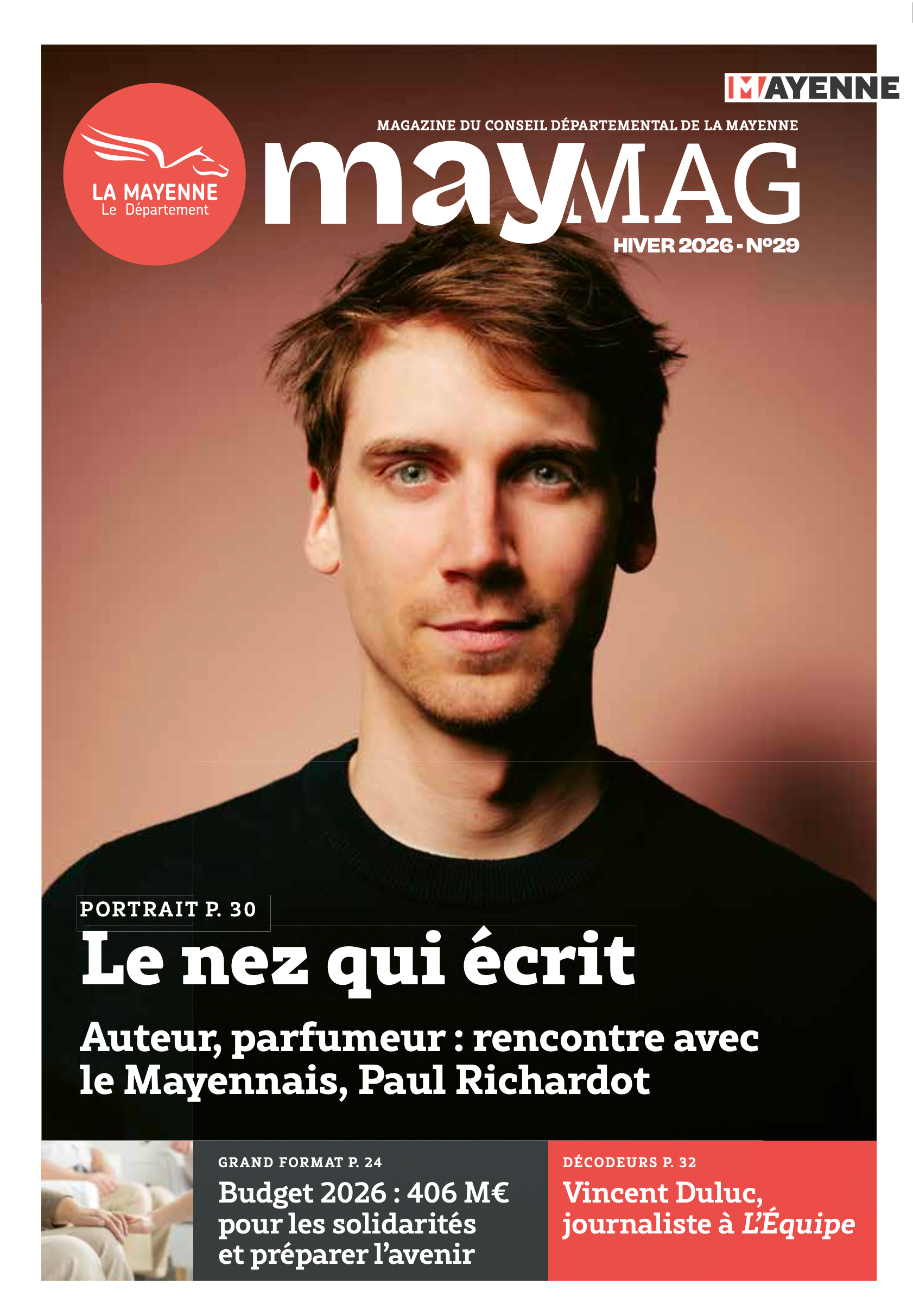 Le numéro 29 de MayMag, paru à l’hiver 2026, présente les grandes priorités du Département, avec un dossier central consacré au budget 2026 et aux politiques de solidarités. Cette édition propose également un aperçu de l’actualité des territoires, des initiatives locales et de la vie culturelle et sportive mayennaise.