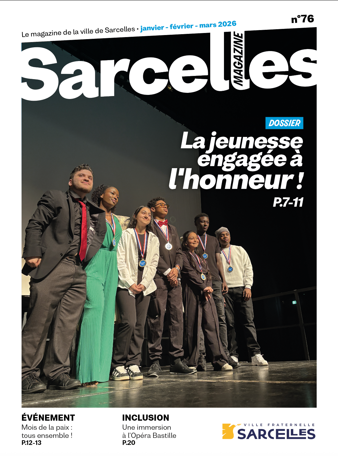Le numéro 76 de Sarcelles Magazine , couvrant la période janvier à mars 2026, met à l’honneur la jeunesse sarcelloise à travers un dossier central consacré à ses engagements au cœur du territoire. Cette édition valorise les initiatives citoyennes, culturelles, solidaires et professionnelles portées par les jeunes, ainsi que les dispositifs municipaux qui les accompagnent. Le magazine revient également sur l’actualité locale avec des sujets liés au cadre de vie, à la démocratie locale, à la solidarité, à la santé, à l’inclusion et à la vie associative. Culture, événements, portraits, agenda et informations pratiques complètent ce numéro, offrant une information de proximité claire, accessible et ancrée dans le quotidien des habitants.