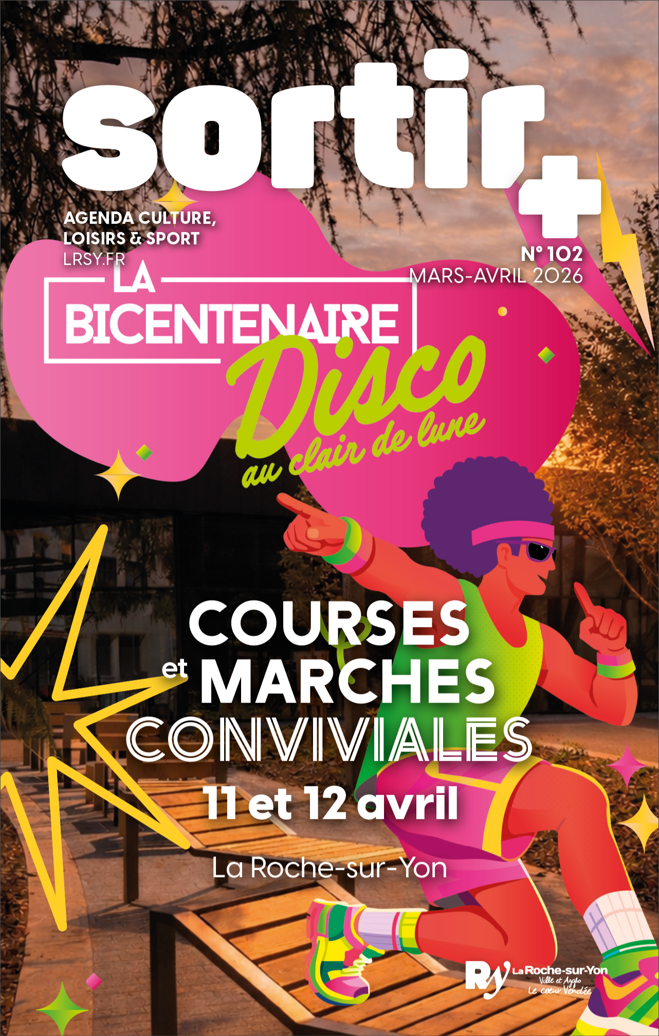 Le numéro 102 de Roche+ Agenda, paru en mars-avril 2026, propose une nouvelle édition dédiée à l’actualité culturelle, de loisirs et sportive du territoire yonnais. Cette parution met en avant les temps forts du printemps, avec un dossier central consacré à La Bicentenaire, rendez-vous convivial mêlant courses et marches au cœur de la ville. L'agenda offre également un panorama complet des événements culturels, des spectacles, des expositions, des animations familiales et des rendez-vous sportifs à venir. Agendas thématiques, focus sur les initiatives locales et informations pratiques complètent cette édition, conçue comme un guide accessible pour accompagner les habitants dans leurs sorties.