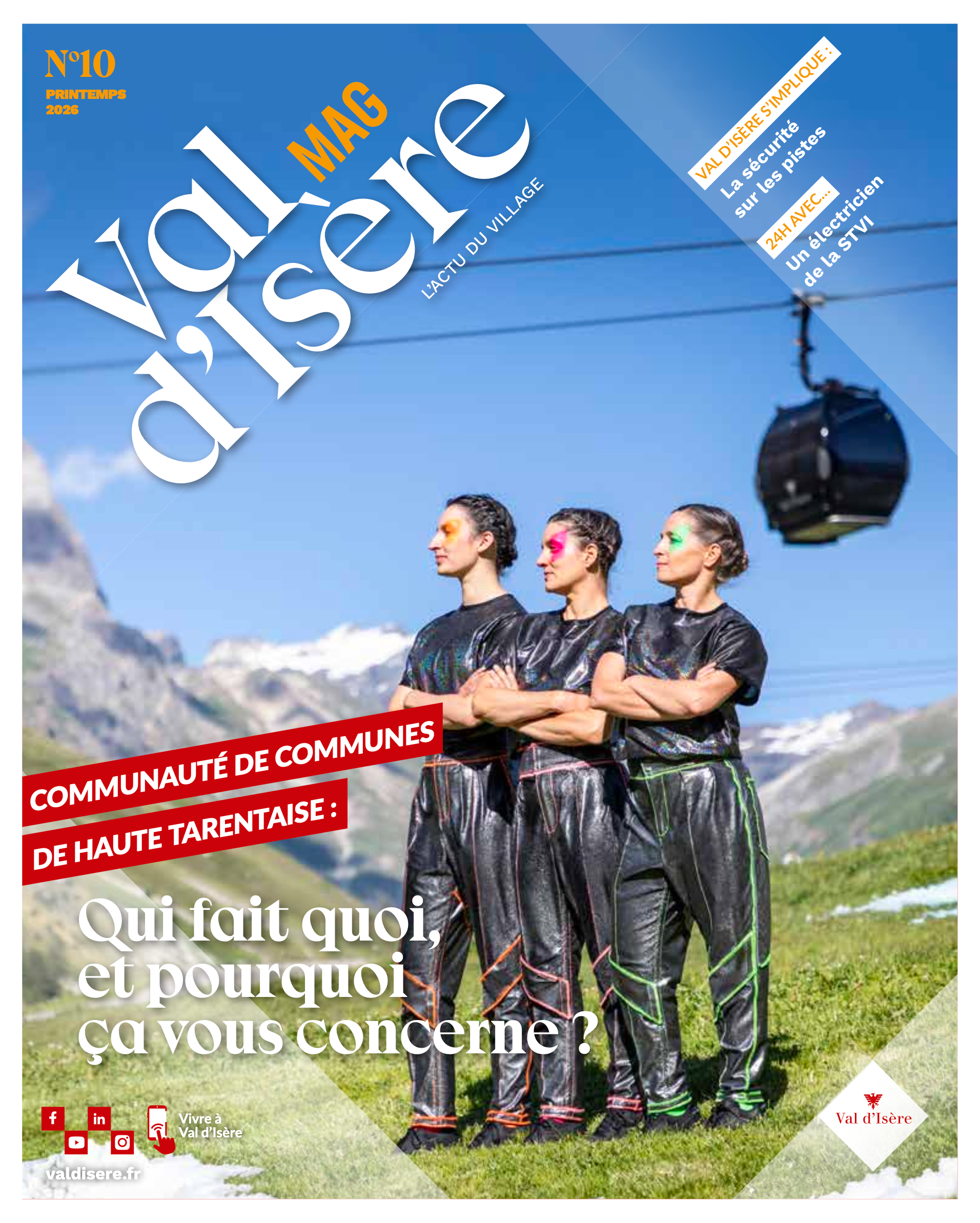 Le numéro 10 de Val d’Isère Mag, magazine trimestriel d’information de la Commune, propose une édition largement consacrée à la Communauté de communes de Haute Tarentaise. Le dossier central décrypte son rôle, ses compétences et ses actions concrètes au service des habitants, de la mobilité à l’action sociale, en passant par l’économie, la culture et l’environnement. Ce numéro met également en lumière les initiatives locales autour de la sécurité sur les pistes, les projets municipaux, la vie associative et les temps forts culturels et sportifs de la saison. Portraits, agenda, tribunes et focus patrimoine complètent cette édition, offrant une information claire, pédagogique et ancrée dans le quotidien avalin.