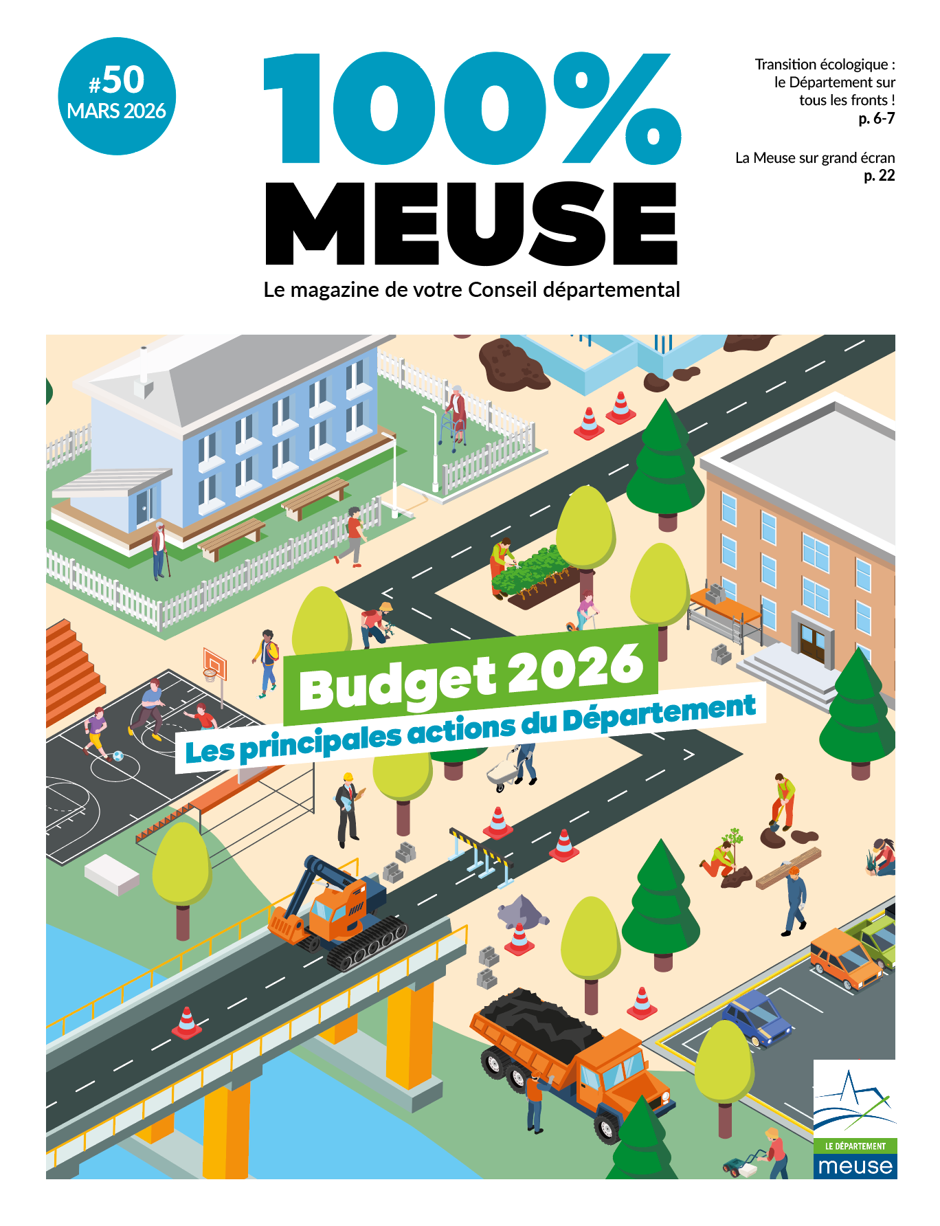 Le numéro 50 de 100 % Meuse, paru en mars 2026, consacre son dossier central au budget 2026 du Département, avec un éclairage détaillé sur les priorités en matière de solidarités, de routes, de collèges, de transition écologique et d’attractivité. Cette édition met notamment en avant les actions engagées autour du Plan Arbres, de la protection de l’enfance, de l’extension du parking Meuse TGV et du développement du pôle e-santé « Cœur de Meuse ». Le magazine valorise également les initiatives locales, les projets culturels, les événements sportifs et les talents du territoire. Reportages, portraits et informations pratiques complètent ce numéro, offrant une vision claire et concrète de l’action départementale au service des Meusiens.