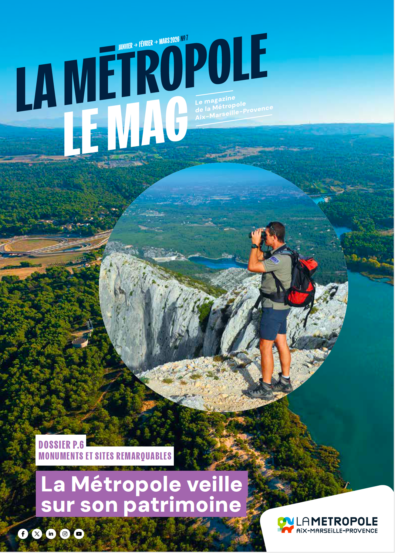 Le numéro 7 de La Métropole Le Mag, daté de janvier à mars 2026, propose une nouvelle édition du magazine de la Métropole Aix-Marseille-Provence. Cette parution met en avant un dossier central consacré à la préservation du patrimoine, avec un focus sur les monuments et sites remarquables accompagnés par la Métropole à travers un fonds de soutien dédié. Le magazine revient également sur les grands projets de mobilité, notamment l’extension du tramway T3 à Marseille et le développement du ZENIBUS, ainsi que sur les actions menées en faveur de la transition écologique, de l’alimentation de qualité et du cadre de vie. Actualités territoriales, initiatives de proximité, engagement en faveur de la jeunesse, agenda culturel et sportif complètent ce numéro, offrant une information claire et accessible à l’ensemble des habitants du territoire métropolitain.