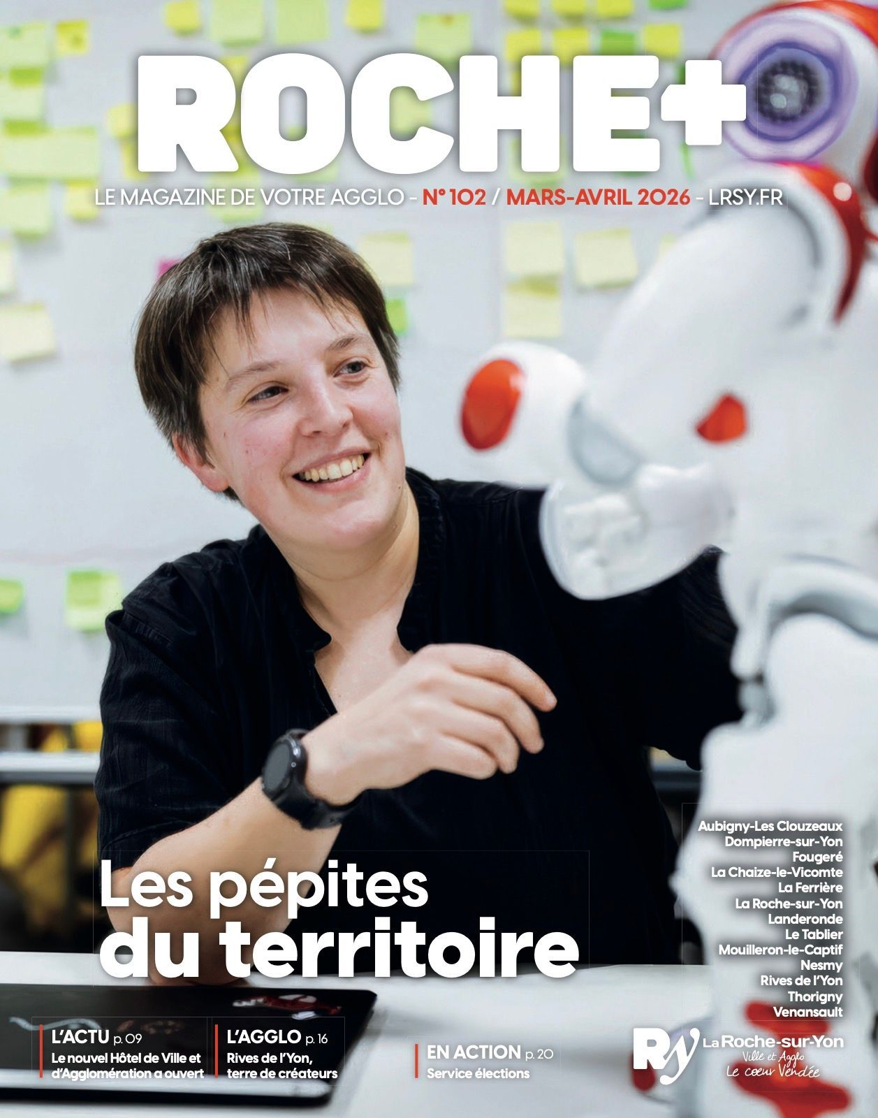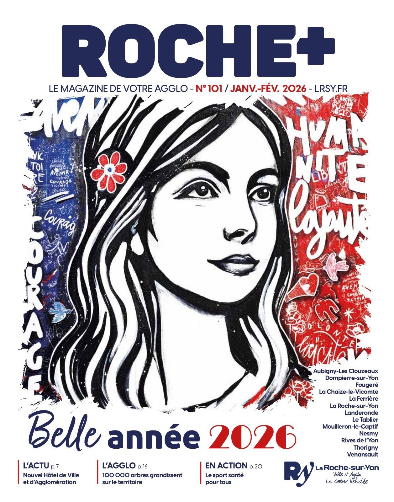 Roche+ est le magazine d’information de la ville et de l’agglomération de La Roche-sur-Yon. À travers ses dossiers, reportages, portraits et pages pratiques, il met en lumière les projets, services publics et initiatives qui façonnent le territoire. Aménagement, santé, éducation, culture, économie locale, démocratie ou transitions écologiques : le magazine décrypte les actions menées au plus près des habitants. Riche en informations utiles et en actualités de quartier comme d’agglomération, Roche+ valorise les talents locaux, accompagne les temps forts de la vie publique et renforce le lien entre la collectivité et les Yonnais.