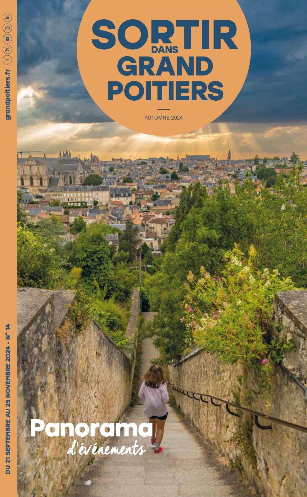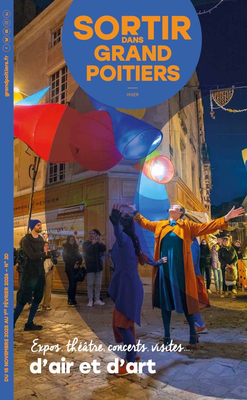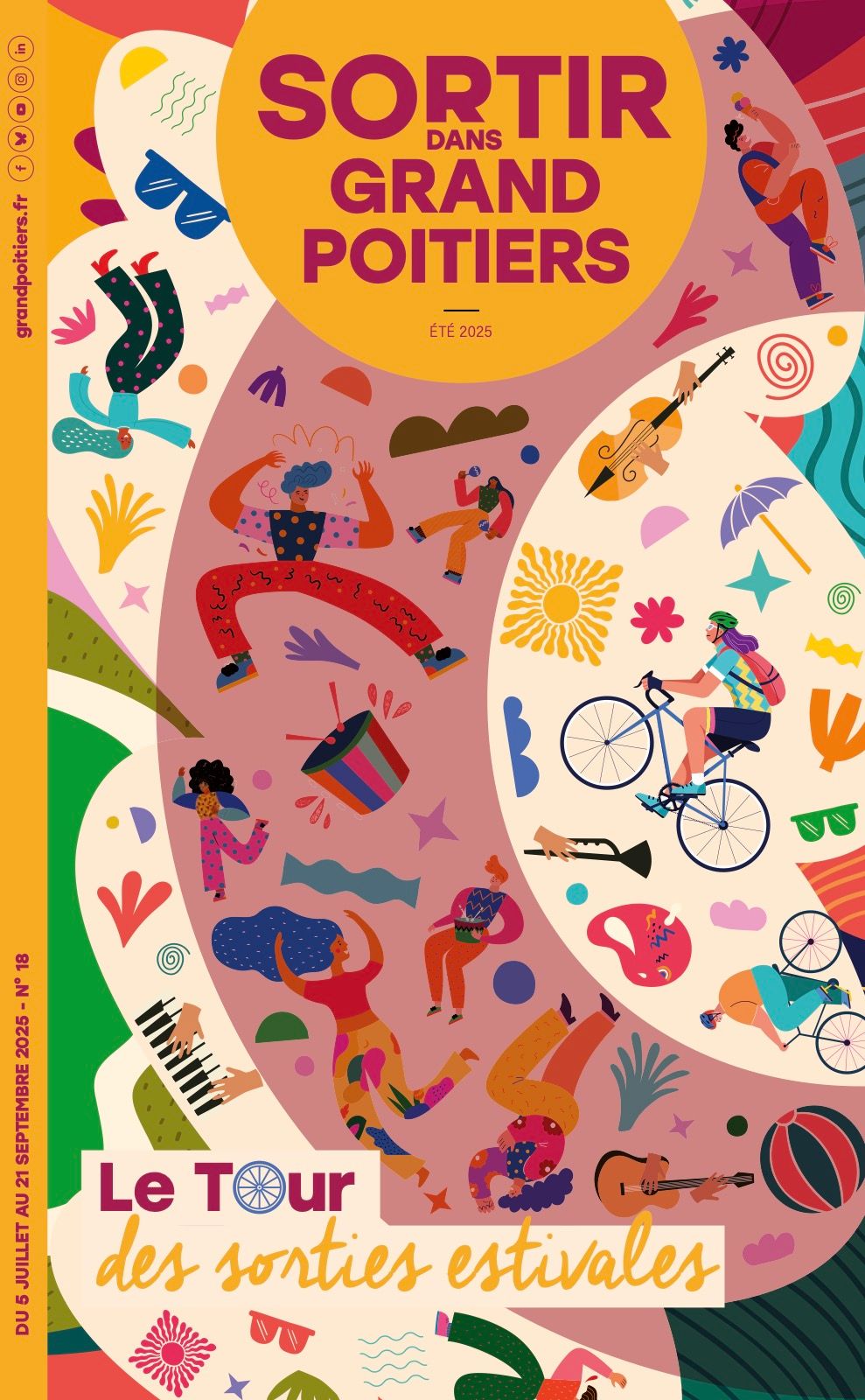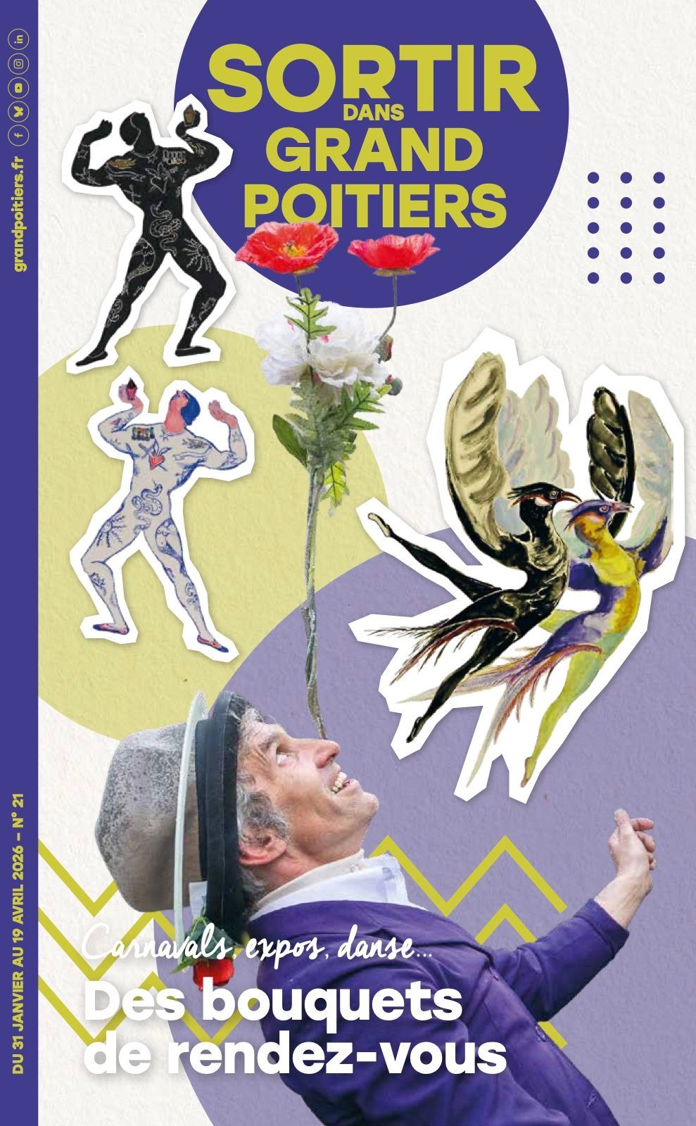 Sortir dans Grand Poitiers est le guide des rendez-vous culturels, sportifs et associatifs proposés sur l’ensemble du territoire de Grand Poitiers. Conçu comme un agenda pratique, il rassemble une large sélection d’événements organisés dans les communes de l’agglomération : spectacles, concerts, expositions, conférences, activités familiales ou animations de plein air. Présenté de manière claire et accessible, le support permet aux habitants comme aux visiteurs de repérer facilement les sorties à venir et de découvrir la richesse de la programmation locale. Il valorise ainsi le dynamisme culturel et la diversité des initiatives qui animent le territoire tout au long de l’année.
