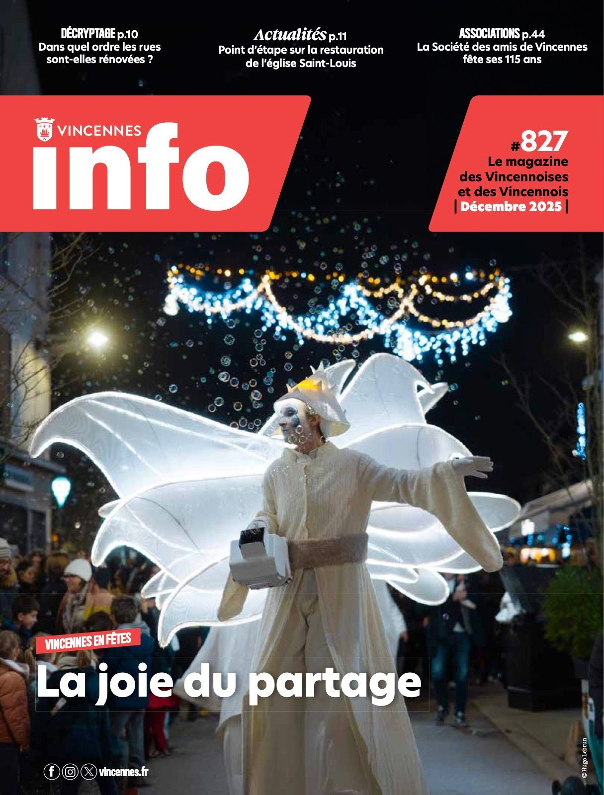 Vincennes Info est le magazine municipal de la ville de Vincennes, destiné à informer les habitants sur l’actualité locale, les projets de la commune et la vie du territoire. Chaque numéro propose dossiers thématiques, reportages, actualités, portraits et informations pratiques autour des politiques publiques, de l’aménagement, de la culture, du sport ou encore de la solidarité. Le magazine met également en valeur les initiatives associatives, les événements et les habitant·e·s qui font vivre la ville au quotidien. Accessible et richement illustré, Vincennes Info contribue à renforcer le lien entre la municipalité et les Vincennois·es.
